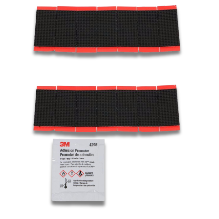 - Includes (14) 1" x 2" hook-and-loop fasteners, and a single adhesive promoter packet (make sure the promotor dries before applying the Velcro