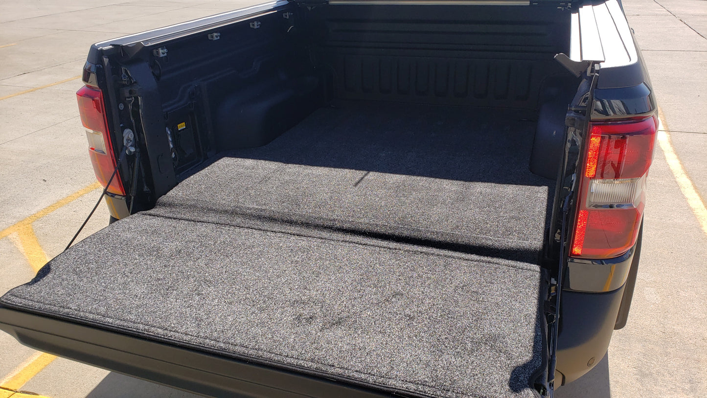 The BedRug XLT Mat is designed specifically for trucks that have an existing spray-in liner or no bed liner. The all-new design has an integrated tailgate gap guard hinge that connects the bed piece to the tailgate piece. The polypropylene top layer construction offers a flat work surface, that is slip and skid resistant. The padded layer provides dent and impact resistance while offering a cushion for your knees while crawling around in your truck bed.
