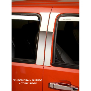 Enhances the look of your vehicle with pillar post trim by Putco! Made of stainless steel. Long lasting material designed to withstand the rigors of the elements. Matches OEM chrome perfectly. Installs with pre-applied red 3M tape. No drilling, no cutting, and easily installed in minutes. Limited lifetime warranty.
