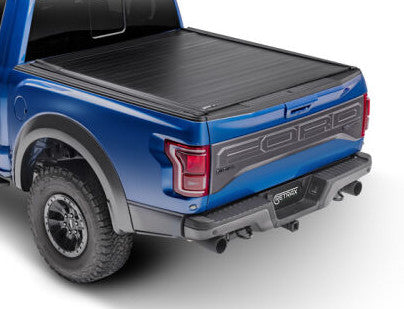 The Retrax IX is a flush-mounted retractable tonneau cover constructed of durable aluminum slats linked by a strong elastomer hinge, helping to eliminate the opportunity for water and debris to enter your truck bed. When combined with the UV-resistant matte finish powder coat, the cover helps keep your truck bed and cargo protected and secure in the roughest of conditions. The Retrax IX's convenient release handle allows the cover to roll into a custom spiral canister at the front of the bed, protecting the cover and reducing wear and tear. Sealed roller bearings inside the aluminum rails deliver smooth, frictionless operation with no binding and virtually eliminate springs and failure-prone moving parts. Retrax IX's unique, adjustable latch stops allow you to secure your cover in any three positions of your choice for the ultimate in hauling capacity and flexibility, letting you use your truck how you need to. This cover, manufactured in the U.S.A. with global materials, installs easily in just 30 minutes, and the "No-Profile" appearance is sure to keep your truck looking good and cargo secure for years to come.