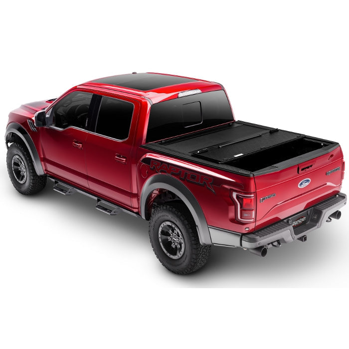 The new ArmorFlex hard folding cover is designed to protect your truck bed and its contents, while maintaining its strength, style and durability. Heavy-duty panels are coated with a LINE-X® specialty automotive coating designed to provide advanced protection from dents and scuffs, even in the most extreme environments. The dual-action tailgate seal offers universal tailgate operation, allowing you to close the tailgate with the last panel of the cover up or down. ArmorFlex is proudly made in the USA, and comes backed by a 5-year warranty.