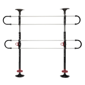 - Center aluminum cross bars are 5/8" in diameter with a bright satin anodized finish